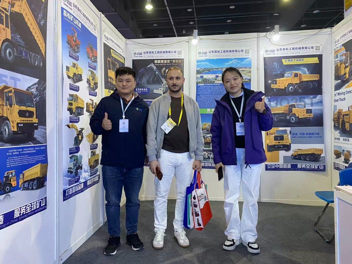 展會現(xiàn)場超熱鬧,山東昌松工程機(jī)械的展位前,中外客戶都來點贊。背景里的產(chǎn)品海報特吸睛,展示的工程機(jī)械性能強(qiáng)、技術(shù)新。